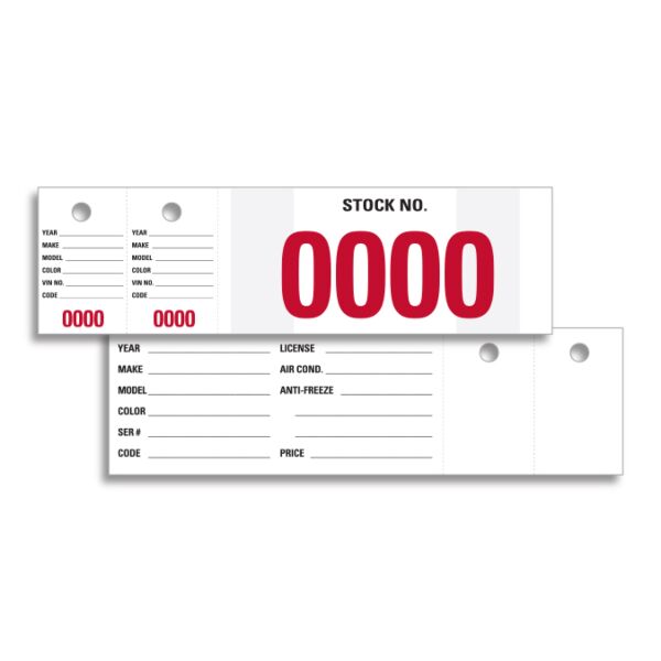 • Entire stock number is produced on heavy duty stock for durability. Plastic sleeves may be used for added strength - key rings not included